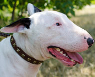 Leather Dog Harness for English Bull Terrier with Brass-Studded Gladiator Style