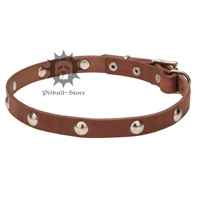 Narrow Dog Collar with Chromed Half-ball Studs for Walks in Style