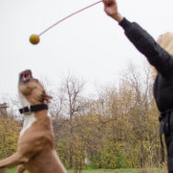 Be sure, your Staffy will be excited of this dog ball on string, because it can bite, chew and play with the ball and have a lot of fun. The dog ball is made of non-toxic solid rubber. Besides, it resisted strong teeth of four-legged "chewers". Use the dog ball for Staffy training and joyful games.